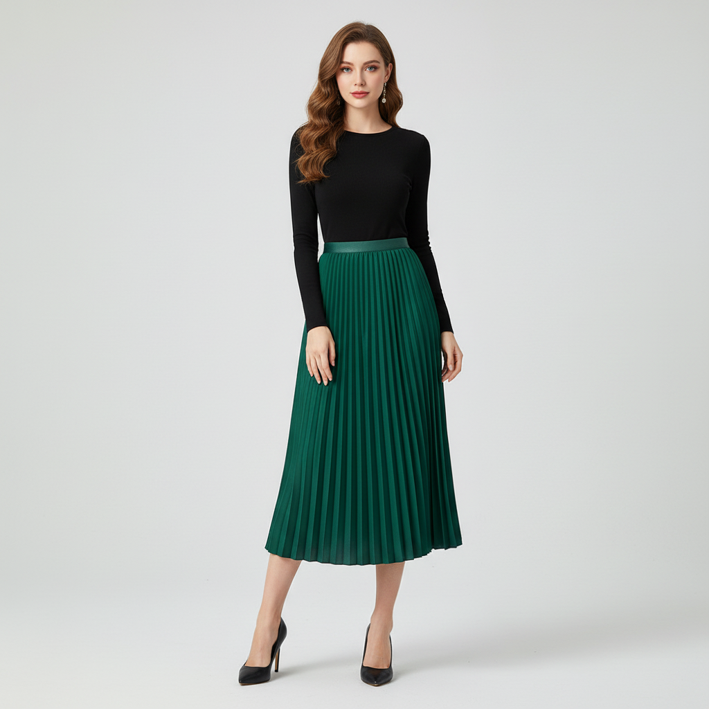 This satin pleated design blends soft luxury with effortless versatility. The high-waist fit creates a graceful, flattering shape, while the smooth satin fabric delivers a refined sheen that transitions seamlessly from casual daytime looks to elevated evening moments. Lightweight and fluid, it moves beautifully with every step.
